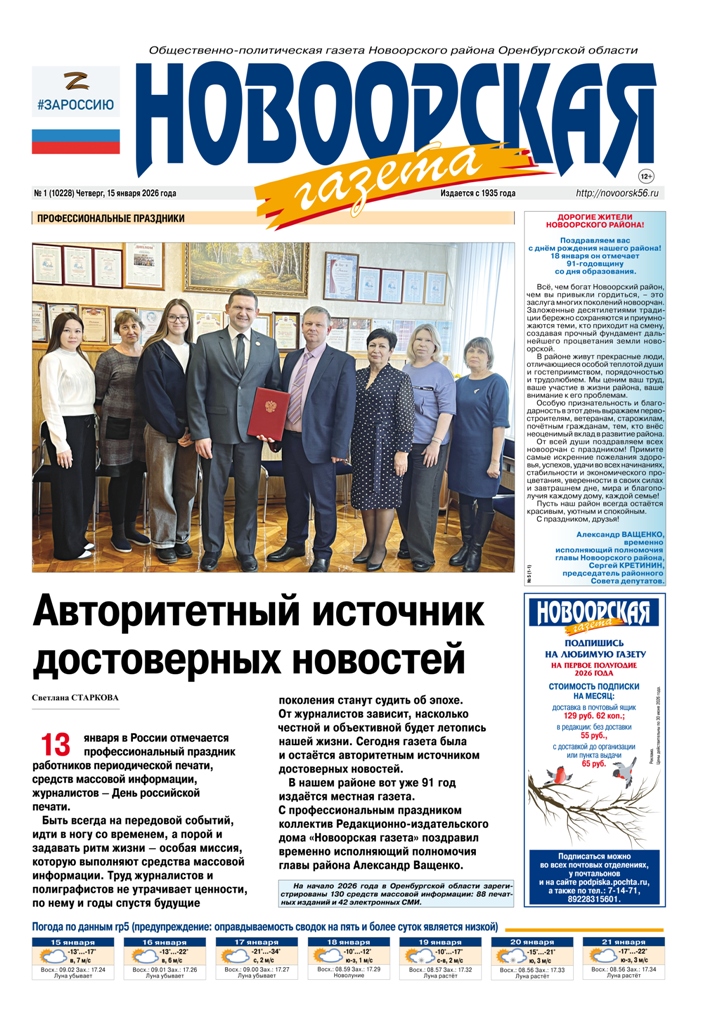 Издание для всех жителей Новоорского района. Выпускается с 1935 года. Оставайтесь с нами!