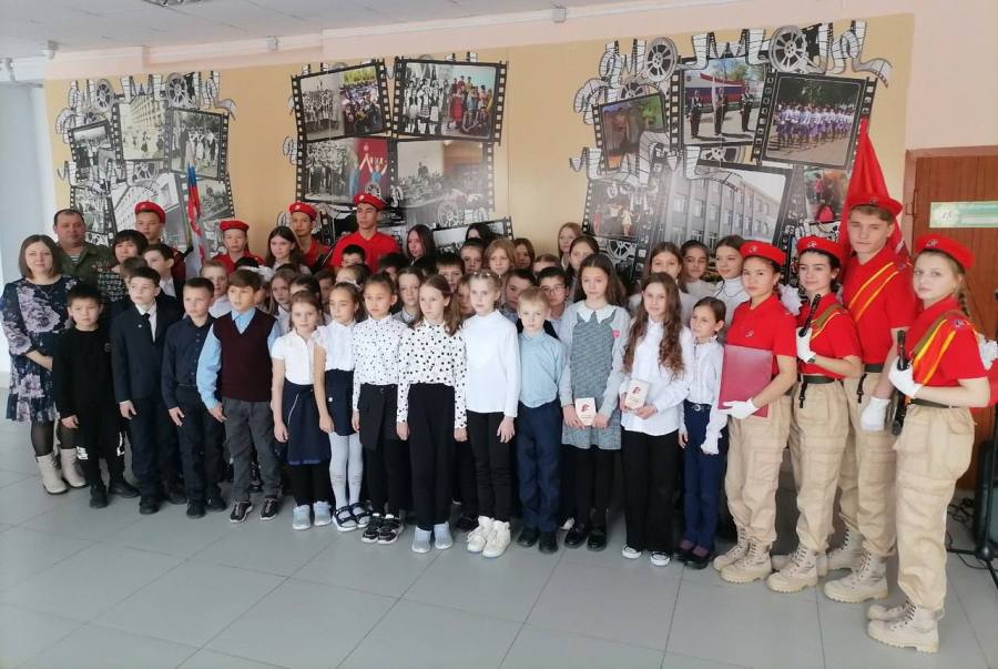 Церемония вступления в дружные ряды юнармейцев России завершилась торжественным вручением новобранцам «Юнармии» значков и удостоверений этого движения.