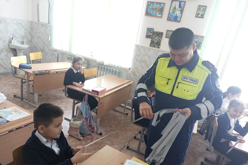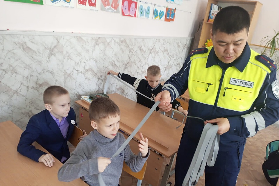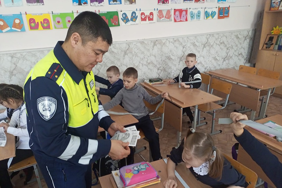 В рамках акции «Засветись в темноте» инспектор ДПС ОМВД России по Новоорскому району Дарбек Шукумов провел беседу с учащимися второй Новоорской школы.