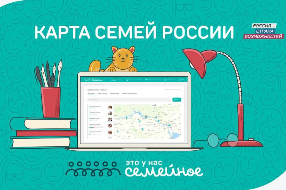 Для участников конкурса «Это у нас семейное» президентской платформы «Россия – страна возможностей» запущен новый сервис «Карта семей России». Теперь каждая семья проекта может найти друзей и единомышленников по всей стране.